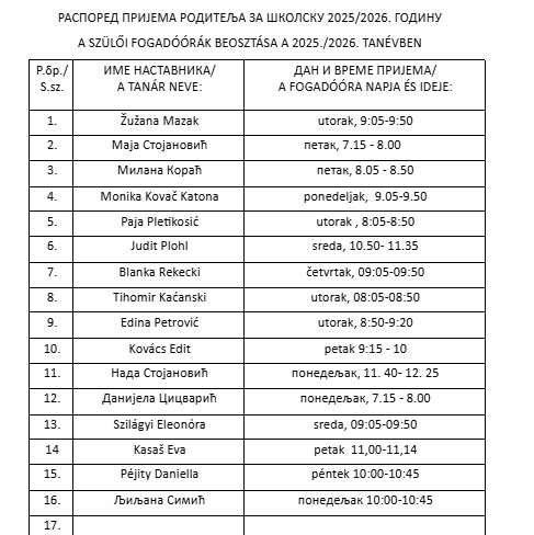 Распоред пријема родитеља